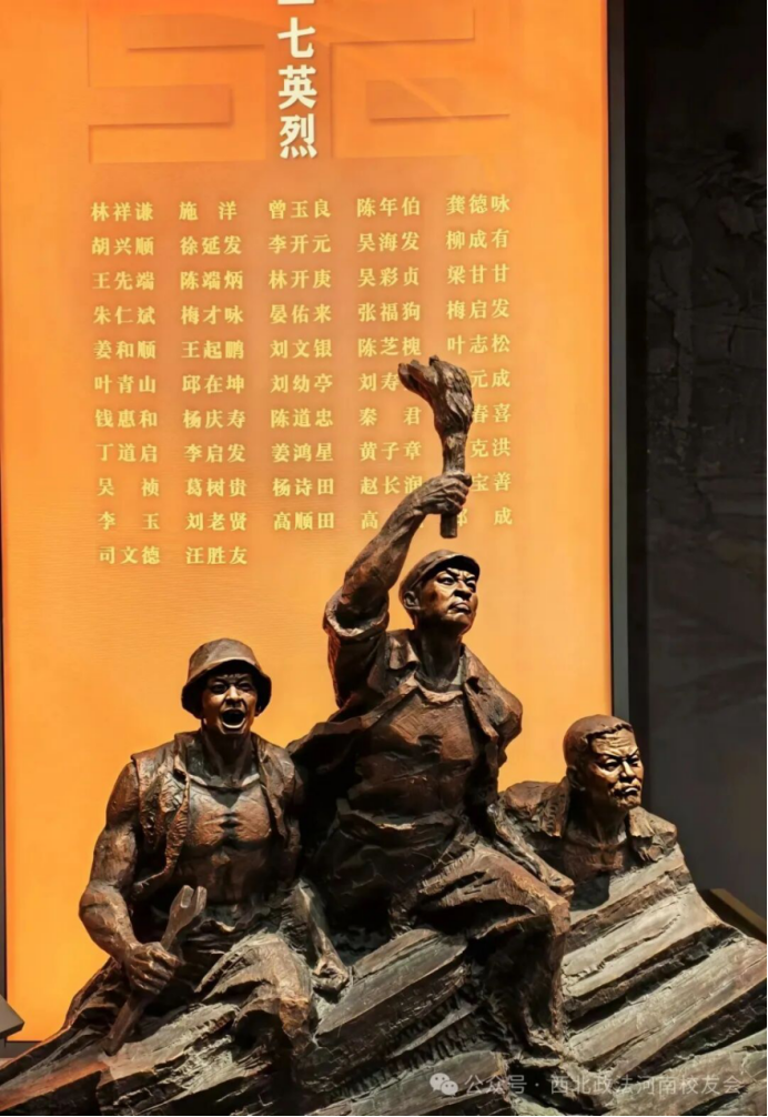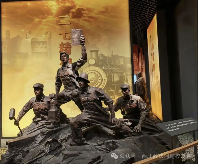 随后,部分校友走进二七纪念堂——这座1923年京汉铁路总工会成立的旧址,在一幅幅历史图片、一件件珍贵文物前驻足凝视,详实的史料生动再现了革命先烈敢于斗争、宁死不屈的英雄气概。尤其看到劳工律师“施洋”的塑像,让我们律师校友倍感鼓舞,“保障人权、保护民生”“为弱势群众奔走呼号”“做人民的好律师”,这些精神号召让我们热血沸腾。