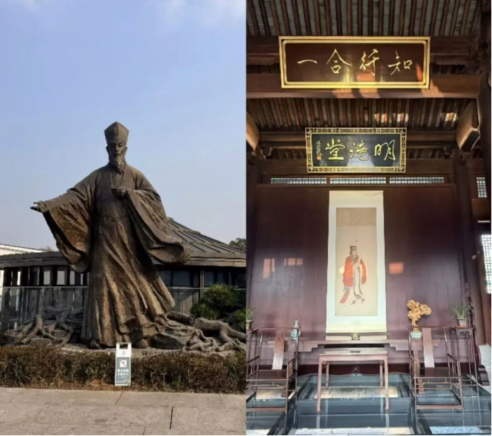 鲁迅故里,人潮汹涌,不然定当为文化墙上的鲁迅先生再点燃一根烟,您慢慢抽,拒绝庸人来扰!沈园里,穿过问梅槛,听导游深情朗诵陆游与唐琬的《钗头凤》,一百次悲喜只不过是一声叹息;到兰亭,天朗气清,经曲水流觞处,观赏王羲之书法,缅怀魏晋文人风度;参观王阳明故居我也兴趣盎然,因为04级的马君则师弟赠我一本他担任特别策划的《王阳明心学》,这是一本通俗易懂的心学启蒙书,读之颇受益,继续体悟“无善无恶心之体,有善有恶意之动,知善知恶是良知,为善去恶是格物”;最后参观青藤书屋和徐渭艺术馆,徐文长,可以称为“中国的梵高“吧!”半生落魄已成翁,独立书斋啸晚风。笔底明珠无处卖,闲掷乱抛野藤中!”