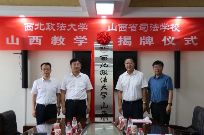 在山西省司法学校,党委书记成正浩、纪委书记马莉,副校长张斌、杨双荣、高雪,学校招生就业办和办公室负责人参加座谈。山西省司法厅副厅长马慧健参会并讲话。范九利、赵全宇、马慧健、成正浩共同为我校设在山西省司法学校的继续教育“山西教学点”揭牌。