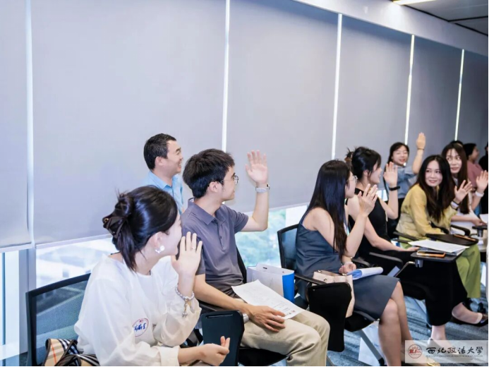 在新老校友互动环节,新校友依次自我介绍,并提出关于职业方向选择、工作压力下的学习规划与时间管理等现实问题。老校友们纷纷结合自身经历积极回应,围绕“律师或法务发展路径”“行业新趋势”“视野拓展与自我提升”等话题展开深入交流。现场一度出现“抢答”的热烈场面,大家争相分享经验,气氛真挚而动人。