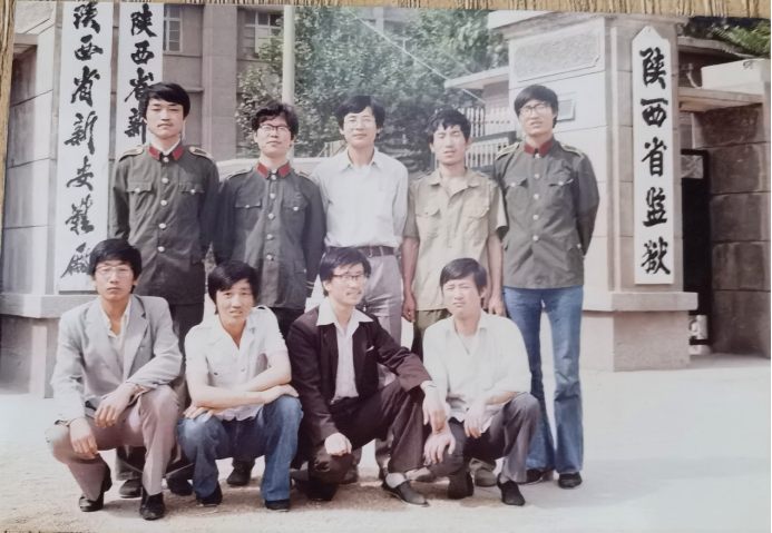 1987年6月18日,西北政法学院第一届劳改管理系学生到陕西省监狱实习时与带队老师合影。