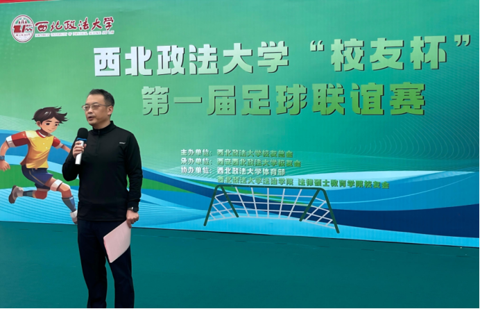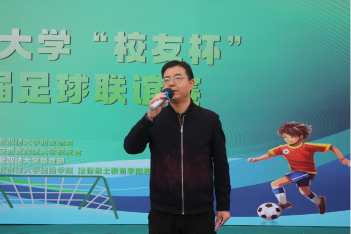 西北政法大学副校长赵全宇在致辞中指出,足球运动所蕴含的激情与拼搏精神,恰与西法大人求学路上的初心、事业途中的担当高度契合。他寄语全体校友,希望大家以球为媒、以赛会友,在奔跑与协作中重温校园旧时光,延续同窗深友情,更能将赛场上的坚韧意志转化为支持母校发展、助力社会进步的坚实力量。
