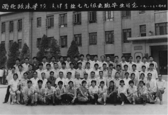 79级是学校停办十多年后恢复招生的第一届学生,这一年全校总共招了350个学生分作两个系。法律系5个班250人全部来自陕甘宁青新西北五省(区),政治理论系两个班100人则清一色是陕西生源。