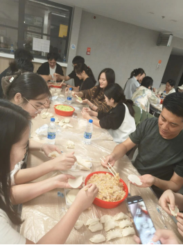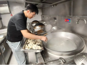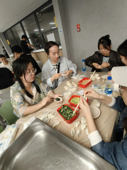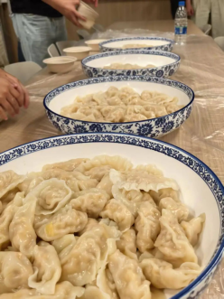 随后,李鼎校友主动带领几位小伙伴承担起煮饺子的重任,在灶台前有条不紊地掌控火候,确保每一锅饺子都受热均匀、鲜香满溢。