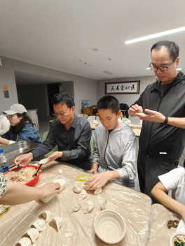 包饺子活动正式开始后,现场暖意融融,氛围热烈。校友们自发分工,协作有序。包饺子娴熟者行云流水,包饺子新手则虚心请教。大家边包边聊,时而回忆校园时光,时而交流深圳奋斗,同窗情谊在指尖与谈笑间自然流淌。不一会儿,各式各样、饱满可爱的饺子便摆满了桌面。