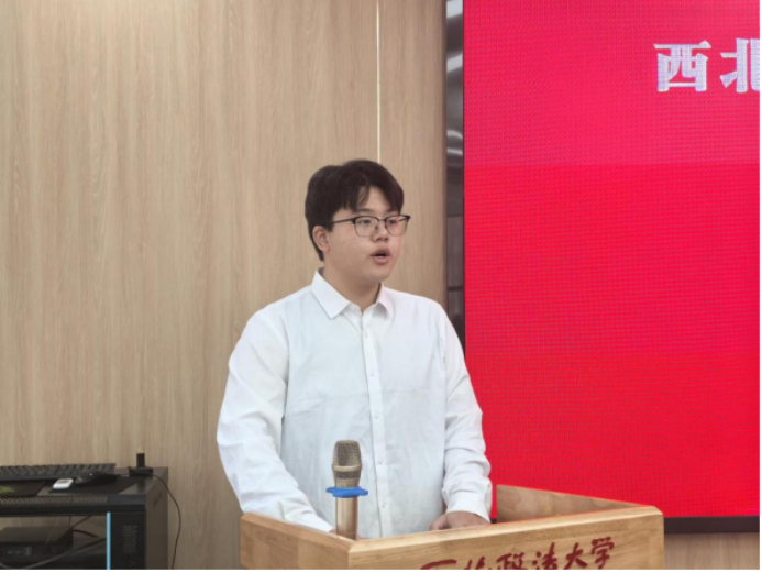 第六届工作室秘书长陈宏韬(2023级法律英语专业)代表新一届成员发言。他感谢领导老师与往届成员的信任与付出,分享了在工作室的实践感悟,表示将坚守服务初心,加强团队协作,努力策划优质内容,讲好校友故事、传播母校声音,打造有凝聚力的校友宣传与服务团队。