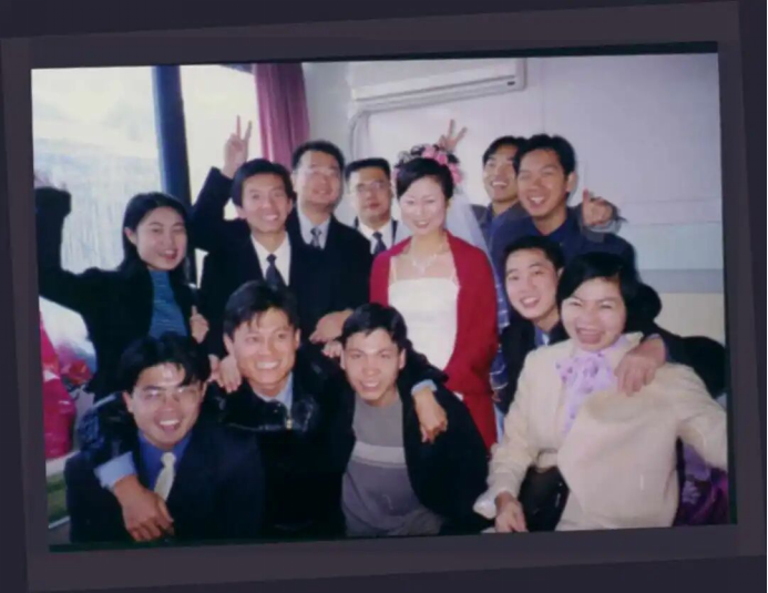 2001年11月24日,荡口古镇,大学同窗参加作者婚礼的合影)