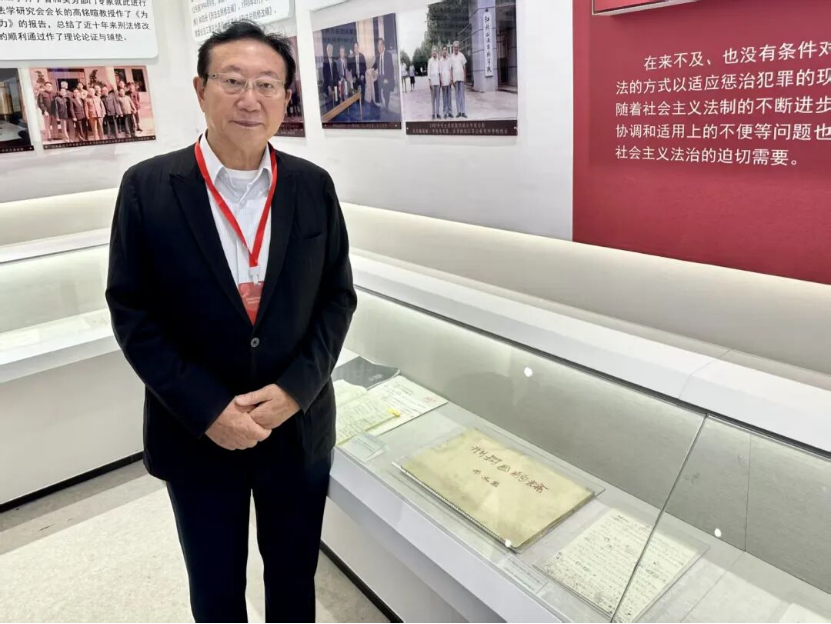 2023年高铭暄学术馆开馆典礼时,我看到一楼展厅中最显著的位置并摆放着我1987年出版的生平第一篇论著《刑罚目的论》的手抄稿和高老师序言的手稿,我着实为之一震!那篇手稿我自己都没有了,高老师竟然保存了几十年,而且将他为我作序的手稿一并展出,又摆放在最显著的位置。当时在场的姜伟、胡云腾等人羡慕嫉妒地说,连我们这些亲学生都没有这种待遇,可见高老师对你是何等厚爱!感动之余,我又情不自禁地对他们说出了“我不是亲学生,却胜似亲学生”的那句口头禅。事后,我复制了展厅里的那部原稿和序言手稿珍藏起来。
